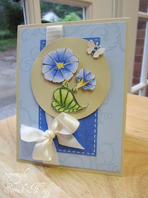 This card uses two different Hero Arts stamps, the text for the background (watermarked image with VersaMark) and the Sunflowers on the main image. I had to experiment with the ink on the sunflowers to make sure that the two different colors did not bleed into each other. I used the corners of Tim Holtz distress inks in the end.